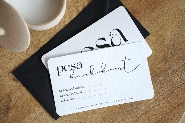 Kingi endale kallile inimesele sünnipäevaks, soolaleivaks, tähtpäeva puhul või niisama tänuks ja tunnustuseks PESA kinkekaart.
